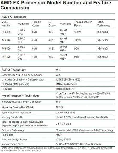Az AMD FX-41xx vonalban a négymagosok, az FX-61xx csoportban a hatmagosok vannak, és kicsit később jönnek még a nyolcmagos Bulldozer processzorok FX-81xx jelöléssel. Minden mag saját 1 MB-os L2 szintű gyorsítótárral operálhat (négy mag esetén összesen 4MB és így tovább), ami felett egy közös 8 MB-os L3 cache tárolja a feldolgozásra váró adatokat és utasításokat. Ez a leosztás az egész FX sorozatra érvényes, a jelenlegi információk szerint.